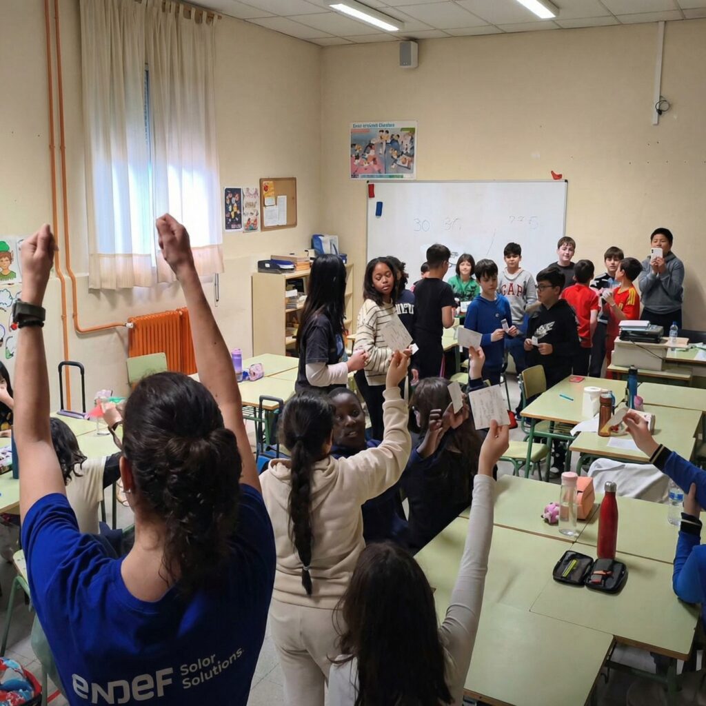 Es por ello que desde ENDEF apoyamos esta iniciativa, permitiendo mediante voluntariado empresarial que nuestras trabajadoras lleven un poquito de la energía solar a las aulas. De esta manera contribuyen creando una semillita de interés por el mundo científico y la energía renovable, y mostrando de manera indirecta un ejemplo de mujer técnica que esperemos cada vez esté más presente en nuestra sociedad.