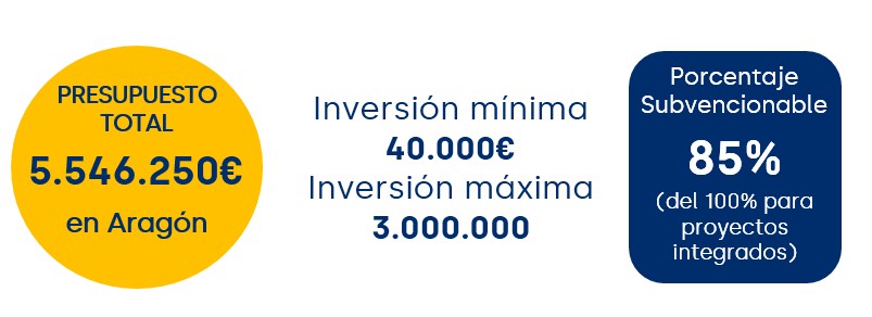 El total del presupuesto destinado para la Comunidad Autónoma de Aragón es de 5.546.250€. Será subvencionable el 85% de la actuación y en el caso de los proyectos integrados* el 100% (más abajo en este texto podrás conocer qué significa esto de los proyectos integrados).